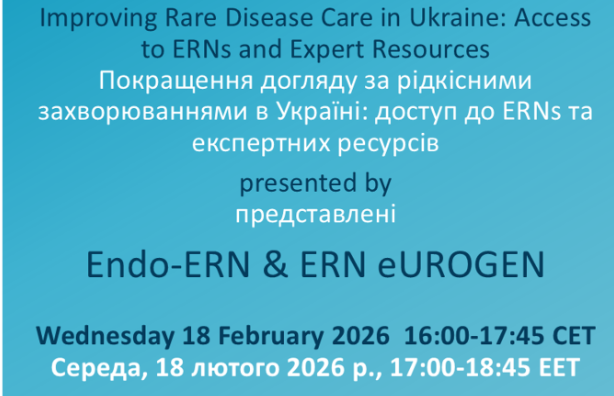 This joint webinar will explore how Ukrainian clinicians and patient representatives can collaborate with European Reference Networks (ERNs) to strengthen rare disease care.